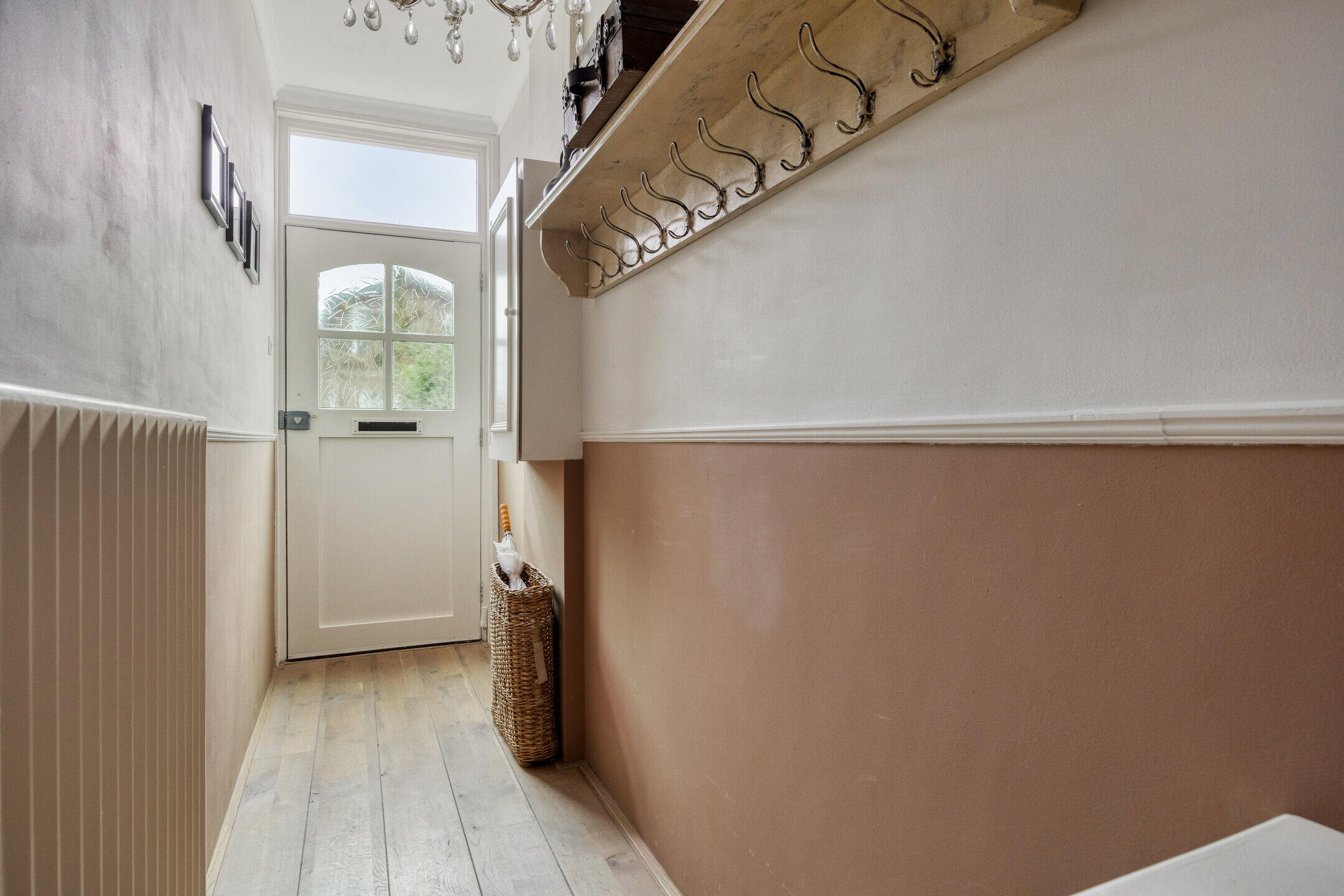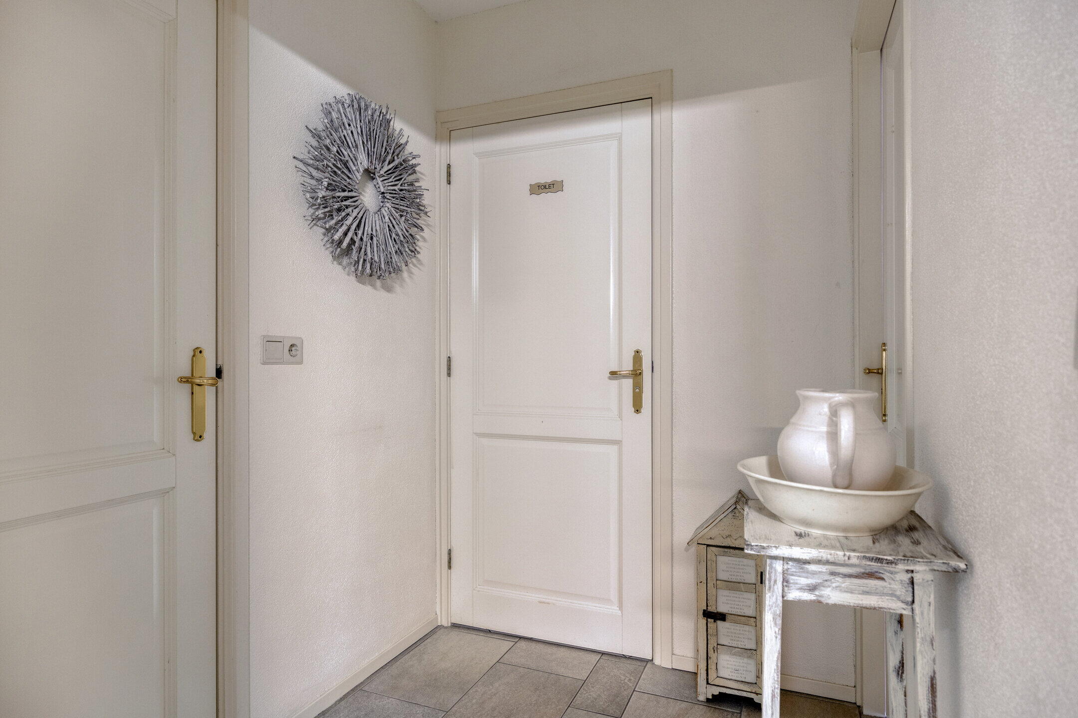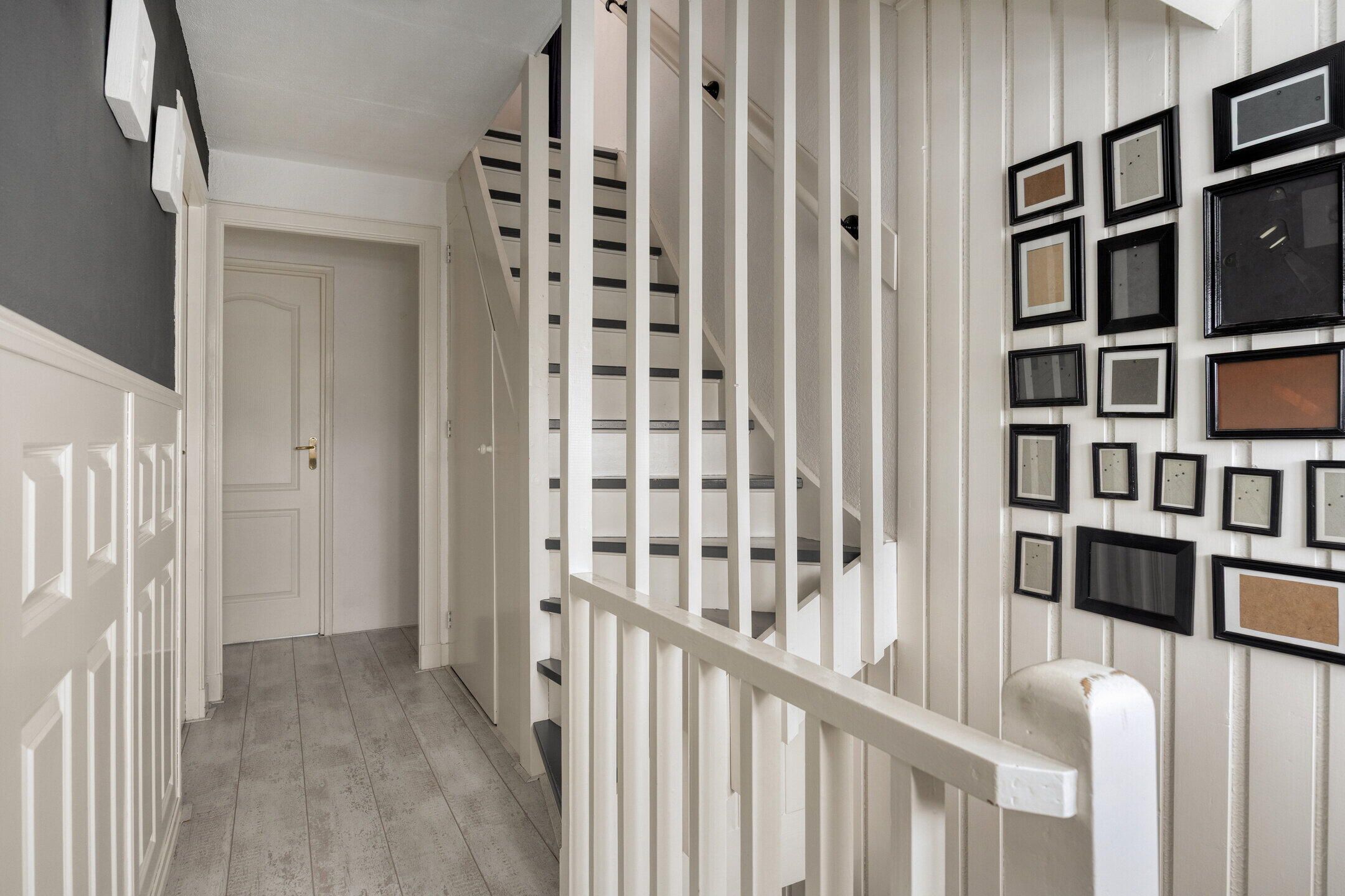 Entree/hal met trapopgang naar de eerste verdieping, meterkast (8 groepen, 2 aardlekschakelaars) en toegang tot de woonkamer.